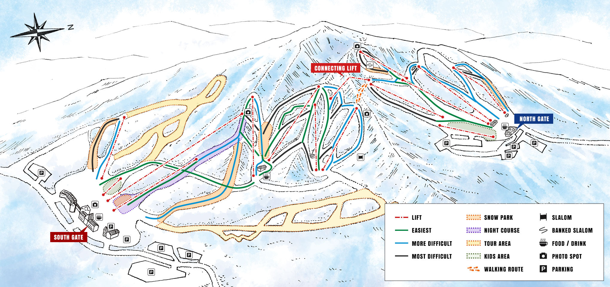 โซนเหนือและโซนใต้ของ Hoshino Resorts Nekoma Mountain Snow Park & Resort มีช่วงเวลาเปิดให้บริการที่แตกต่างกัน: